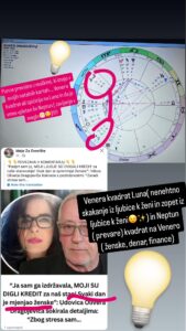 … Neptun v lepih aspektih z Venero in Saturn ponavadi pokažejo resnično predanost, trajnost in dolgoživost nekega odnosa…Celin Dion je en redek primer , da po smrti moža nikoli nikogar ni spustila blizu sebe, ker je v svojem srcu za vedno nosila njegovo energijo![]()